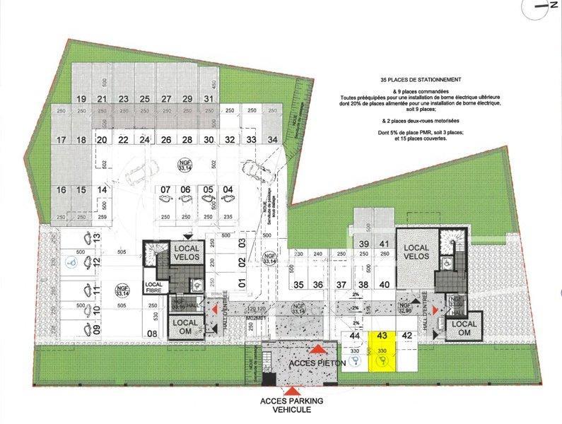 Je propose à la location l'emplacement de stationnement privatif n°43, idéalement situé au sein de la résidence neuve de standing « Les Rives du Roi »